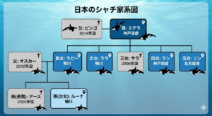 日本の海獣界を牽引するシャチ・ファミリー、。家系図でそのルーツを辿り、