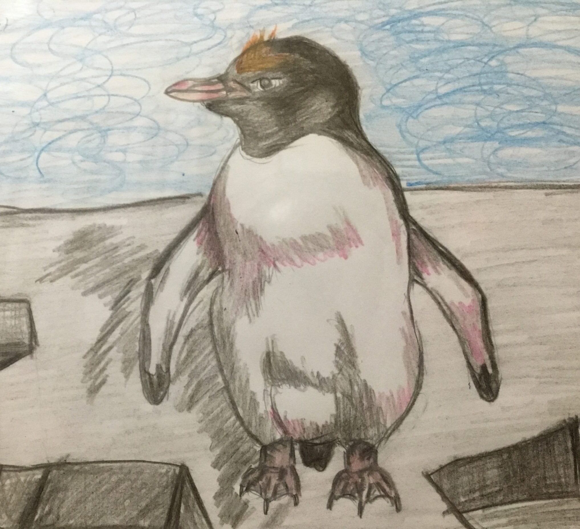 冠羽が特徴的で、70cmくらいの中型のペンギンさんでした。